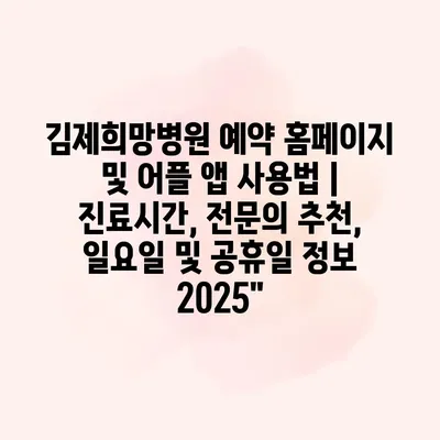 김제희망병원 예약 홈페이지 및 어플 앱 사용법 | 진료시간, 전문의 추천, 일요일 및 공휴일 정보 2025″