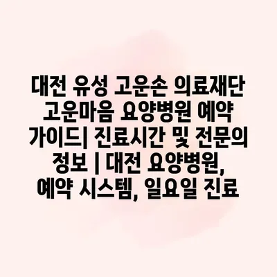 대전 유성 고운손 의료재단 고운마음 요양병원 예약 가이드| 진료시간 및 전문의 정보 | 대전 요양병원, 예약 시스템, 일요일 진료