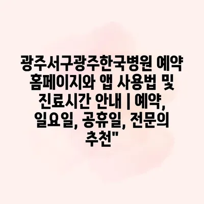광주서구광주한국병원 예약 홈페이지와 앱 사용법 및 진료시간 안내 | 예약, 일요일, 공휴일, 전문의 추천”