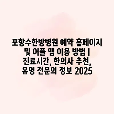 포항수한방병원 예약 홈페이지 및 어플 앱 이용 방법 | 진료시간, 한의사 추천, 유명 전문의 정보 2025