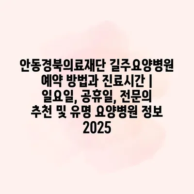 안동경북의료재단 길주요양병원 예약 방법과 진료시간 | 일요일, 공휴일, 전문의 추천 및 유명 요양병원 정보 2025