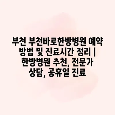 부천 부천바로한방병원 예약 방법 및 진료시간 정리 | 한방병원 추천, 전문가 상담, 공휴일 진료