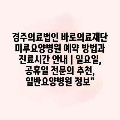 경주의료법인 바로의료재단 미루요양병원 예약 방법과 진료시간 안내 | 일요일, 공휴일 전문의 추천, 일반요양병원 정보”