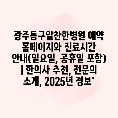 광주동구알찬한병원 예약 홈페이지와 진료시간 안내(일요일, 공휴일 포함) | 한의사 추천, 전문의 소개, 2025년 정보’