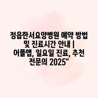 정읍한서요양병원 예약 방법 및 진료시간 안내 | 어플앱, 일요일 진료, 추천 전문의 2025″