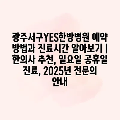 광주서구YES한방병원 예약 방법과 진료시간 알아보기 | 한의사 추천, 일요일 공휴일 진료, 2025년 전문의 안내
