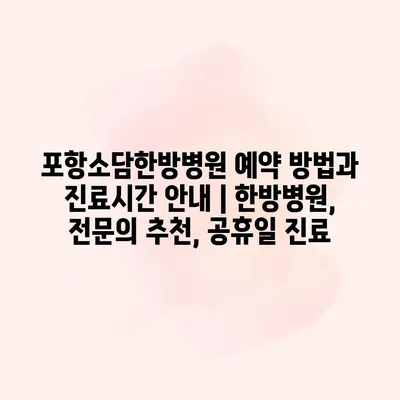포항소담한방병원은 예약 방법이 간단하고 편리하여 많은 환자들이 이용하고 있습니다. 온라인 예약은 병원 홈페이지를 통해 가능하며, 전화 예약도 할 수 있습니다. 특히, 초기 진료를 원하시는 분들은… 더 보기 »포항소담한방병원 예약 방법과 진료시간 안내 | 한방병원, 전문의 추천, 공휴일 진료