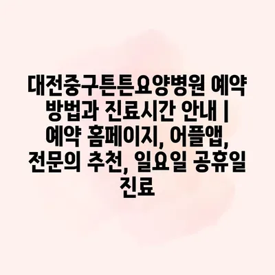 대전중구튼튼요양병원 예약 방법과 진료시간 안내 | 예약 홈페이지, 어플앱, 전문의 추천, 일요일 공휴일 진료