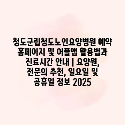 청도군립청도노인요양병원의 예약은 매우 간편하게 홈페이지와 어플앱을 통해 할 수 있습니다. 홈페이지에 접속하신 후 회원가입을 하시면 예약 서비스를 이용할 수 있으며, 어플리케이션을 설치하시면 더욱 손쉽게 예약… 더 보기 »청도군립청도노인요양병원 예약 홈페이지 및 어플앱 활용법과 진료시간 안내 | 요양원, 전문의 추천, 일요일 및 공휴일 정보 2025