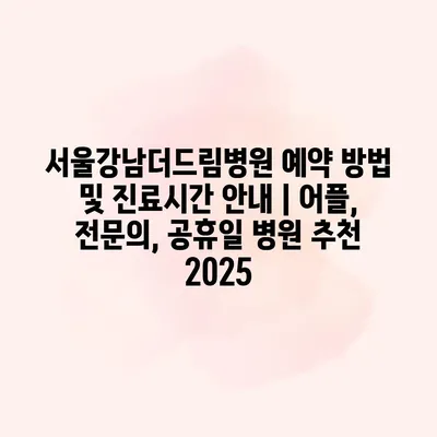 서울강남더드림병원 예약 방법 및 진료시간 공지 | 어플, 전연락, 공휴일 병원 추천 2025 서울강남더드림병원은 편리한 예약 시스템을 통해 환자분들께 효율적인 진료 서비스를 알려알려드리겠습니다. 병원 방문… 더 보기 »서울강남더드림병원 예약 방법 및 진료시간 안내 | 어플, 전문의, 공휴일 병원 추천 2025