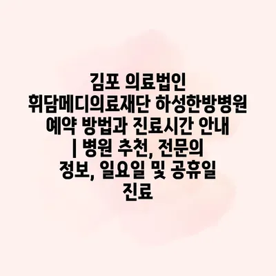 김포 의료법인 휘담메디의료재단 하성한방병원은 안전하고 전문적인 한방 치료를 제공하는 기관입니다. 이 병원에서는 다양한 한방 치료와 함께 수많은 전문 의료진이 진료를 담당하고 있습니다. 예약 방법은 매우… 더 보기 »김포 의료법인 휘담메디의료재단 하성한방병원 예약 방법과 진료시간 안내 | 병원 추천, 전문의 정보, 일요일 및 공휴일 진료