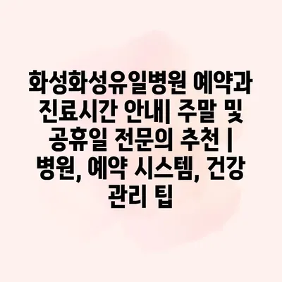 화성화성유일병원 예약과 진료시간 공지| 주말 및 공휴일 전연락 추천 | 병원, 예약 시스템, 건강 관리 팁 화성화성유일병원은 여러분의 건강을 최우선으로 생각합니다. 예약 시스템을 통해 간편하게… 더 보기 »화성화성유일병원 예약과 진료시간 안내| 주말 및 공휴일 전문의 추천 | 병원, 예약 시스템, 건강 관리 팁