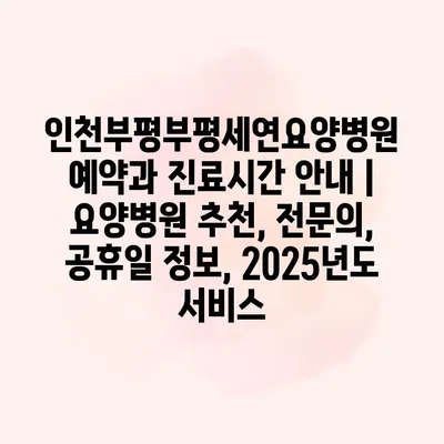 인천부평부평세연요양병원 예약과 진료시간 공지는 여러분의 편리한 이용을 위해 중요합니다. 본 병원은 전문가들에 의해 운영되며, 안정적인 진료를 제공하고 있습니다. 예약은 전화 또는 온라인을 통해 가능하며, 진료시간은… 더 보기 »인천부평부평세연요양병원 예약과 진료시간 안내 | 요양병원 추천, 전문의, 공휴일 정보, 2025년도 서비스