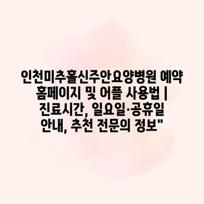 인천미추홀신주안요양병원 예약 홈페이지 및 어플 사용법에 대해 알아보겠습니다. 우선, 병원의 진료시간을 확인하는 것이 중요합니다. 일반적으로 평일에는 오전 9시부터 오후 6시까지 진료를 시행하며, 토요일은 오전 9시부터… 더 보기 »인천미추홀신주안요양병원 예약 홈페이지 및 어플 사용법 | 진료시간, 일요일·공휴일 안내, 추천 전문의 정보”