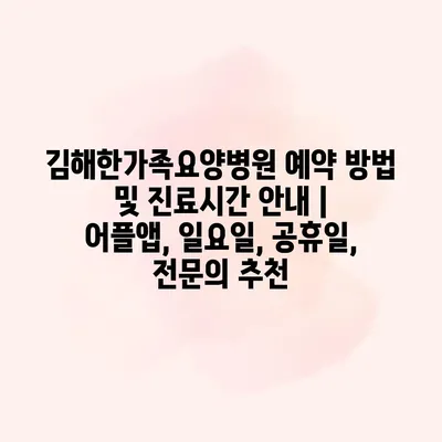 김해한가족요양병원 예약 방법 및 진료시간 공지에 대해 알아보겠습니다. 예약은 전화 및 어플앱을 통해 할 수 있습니다. 어플앱을 통해 쉽게 확인하고 예약할 수 있어 많은 환자분들께… 더 보기 »김해한가족요양병원 예약 방법 및 진료시간 안내 | 어플앱, 일요일, 공휴일, 전문의 추천