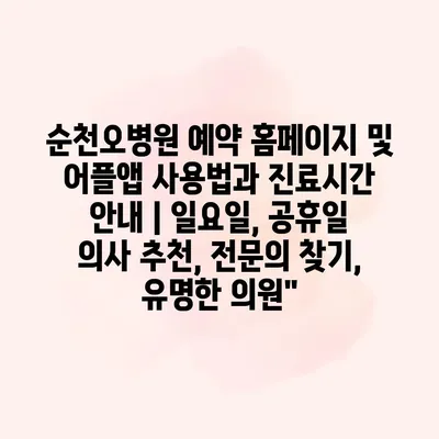 순천오병원 예약 홈페이지 및 어플앱 사용법과 진료시간 공지에 대해 알아보겠습니다. 먼저, 순천오병원 예약 홈페이지와 어플앱은 사용이 간편하여, 원하는 진료를 쉽게 예약할 수 있도록 도와줍니다. 홈페이지에… 더 보기 »순천오병원 예약 홈페이지 및 어플앱 사용법과 진료시간 안내 | 일요일, 공휴일 의사 추천, 전문의 찾기, 유명한 의원”