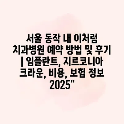 서울 동작 내 이처럼 치과병원 예약 방법 및 후기 | 임플란트, 지르코니아 크라운, 비용, 보험 정보 2025″