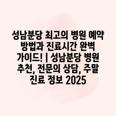 성남분당 최고의 병원 예약 방법과 진료시간 완벽 가이드! | 성남분당 병원 추천, 전문의 상담, 주말 진료 정보 2025