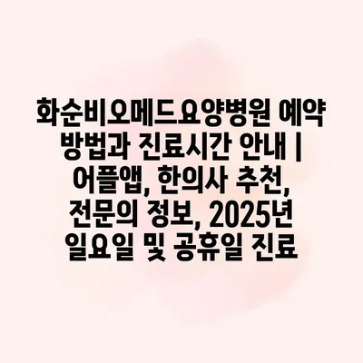 화순비오메드요양병원의 예약 방법과 진료시간에 대해 알아보겠습니다. 환자분들은 어플 앱을 통해 간편하게 예약할 수 있으며, 전화 예약도 할 수 있습니다. 진료시간은 평일 오전 9시부터 오후 6시까지이며,… 더 보기 »화순비오메드요양병원 예약 방법과 진료시간 안내 | 어플앱, 한의사 추천, 전문의 정보, 2025년 일요일 및 공휴일 진료
