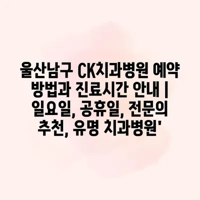 울산남구 CK치과병원은 환자 중심의 진료로 많은 사랑을 받고 있는 유명 치과병원입니다. 먼저 예약 방법은 매우 간단합니다. 전화 또는 병원 웹사이트를 통해 온라인 예약이 할 수… 더 보기 »울산남구 CK치과병원 예약 방법과 진료시간 안내 | 일요일, 공휴일, 전문의 추천, 유명 치과병원’