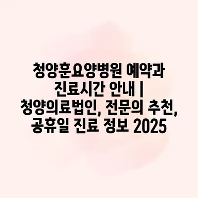 청양훈요양병원 예약과 진료시간 공지 | 청양의료법인, 전연락 추천, 공휴일 진료 정보 2025 청양훈요양병원은 전문적인 의료 서비스를 제공하는 곳으로, 환자 중심의 진료를 지향합니다. 예약은 전화 또는… 더 보기 »청양훈요양병원 예약과 진료시간 안내 | 청양의료법인, 전문의 추천, 공휴일 진료 정보 2025