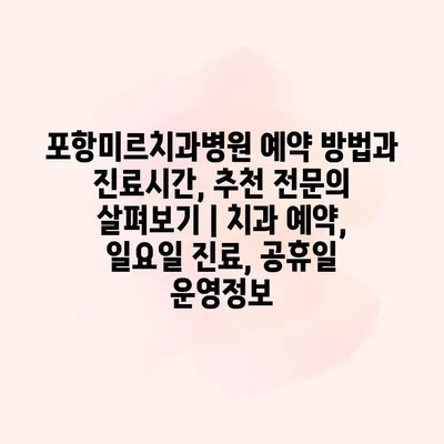 포항미르치과병원 예약 방법과 진료시간, 추천 전문의 살펴보기 | 치과 예약, 일요일 진료, 공휴일 운영정보