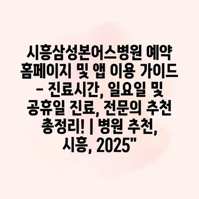시흥삼성본어스병원 예약 홈페이지 및 앱 이용 설명서 – 진료시간, 일요일 및 공휴일 진료, 전연락 추천 총정리! | 병원 추천, 시흥, 2025 시흥삼성본어스병원은 다양한 진료 서비스를… 더 보기 »시흥삼성본어스병원 예약 홈페이지 및 앱 이용 가이드 – 진료시간, 일요일 및 공휴일 진료, 전문의 추천 총정리! | 병원 추천, 시흥, 2025″