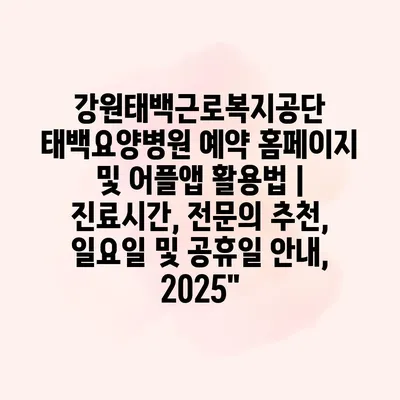 강원태백근로복지공단 태백요양병원 예약 홈페이지 및 어플앱 활용법 | 진료시간, 전연락 추천, 일요일 및 공휴일 공지, 2025 태백요양병원은 노인 및 요양 환자를 위한 전문병원으로, 환자와 보호자의… 더 보기 »강원태백근로복지공단 태백요양병원 예약 홈페이지 및 어플앱 활용법 | 진료시간, 전문의 추천, 일요일 및 공휴일 안내, 2025″