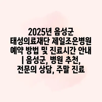 2025년 음성군 태성의료재단 제일조은병원의 예약 방법과 진료시간을 공지해 알려드리겠습니다. 제일조은병원은 손쉬운 예약 시스템으로 환자분들을 맞이하고 있습니다. 전화 또는 병원 웹사이트를 통해 간단히 예약할 수 있으며,… 더 보기 »2025년 음성군 태성의료재단 제일조은병원 예약 방법 및 진료시간 안내 | 음성군, 병원 추천, 전문의 상담, 주말 진료
