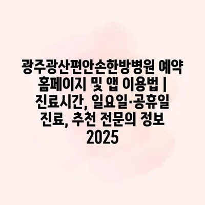 광주광산편안손한방병원 예약 홈페이지 및 앱 이용법 | 진료시간, 일요일·공휴일 진료, 추천 전연락 정보 2025에 대하여 알아보겠습니다. 병원을 이용할 때 가장 먼저 필요한 것은 예약입니다. 광주광산편안손한방병원은… 더 보기 »광주광산편안손한방병원 예약 홈페이지 및 앱 이용법 | 진료시간, 일요일·공휴일 진료, 추천 전문의 정보 2025