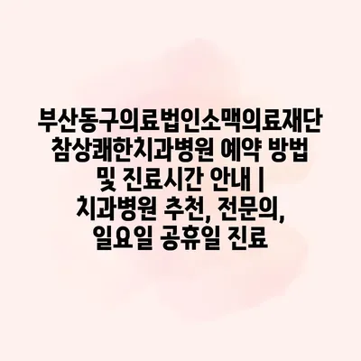 부산동구의료법인소맥의료재단 참상쾌한치과병원 예약 방법 및 진료시간 공지를 제공합니다. 치과 진료가 필요하신 분들은 참상쾌한치과병원을 고려해보시기 바랍니다. 예약은 전화 또는 홈페이지를 통해 간편하게 하실 수 있으며, 초기… 더 보기 »부산동구의료법인소맥의료재단 참상쾌한치과병원 예약 방법 및 진료시간 안내 | 치과병원 추천, 전문의, 일요일 공휴일 진료