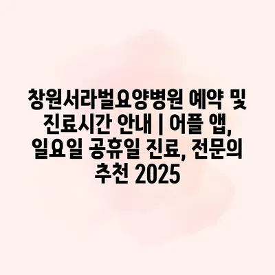 창원서라벌요양병원 예약 및 진료시간 안내 | 어플 앱, 일요일 공휴일 진료, 전문의 추천 2025