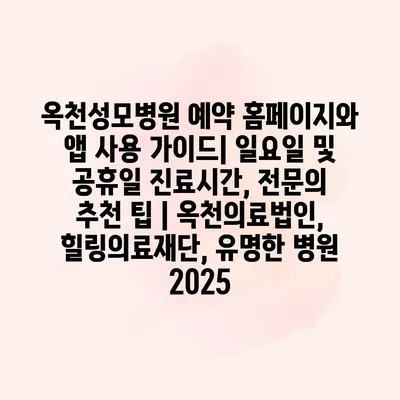 옥천성모병원 예약 홈페이지와 앱 사용 설명서는 환자 여러분이 의료 서비스를 더 쉽고 편리하게 이용할 수 있도록 도와줍니다. 특히, 일요일 및 공휴일 진료시간에 대한 정보는 중요합니다.… 더 보기 »옥천성모병원 예약 홈페이지와 앱 사용 가이드| 일요일 및 공휴일 진료시간, 전문의 추천 팁 | 옥천의료법인, 힐링의료재단, 유명한 병원 2025
