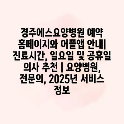 경주에스요양병원 예약 홈페이지와 어플앱 안내| 진료시간, 일요일 및 공휴일 의사 추천 | 요양병원, 전문의, 2025년 서비스 정보