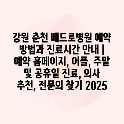 강원 춘천 베드로병원 예약 방법과 진료시간 공지 | 예약 홈페이지, 어플, 주말 및 공휴일 진료, 의사 추천, 전연락 찾기 2025 베드로병원은 다양한 진료 과목을 알려드려… 더 보기 »강원 춘천 베드로병원 예약 방법과 진료시간 안내 | 예약 홈페이지, 어플, 주말 및 공휴일 진료, 의사 추천, 전문의 찾기 2025