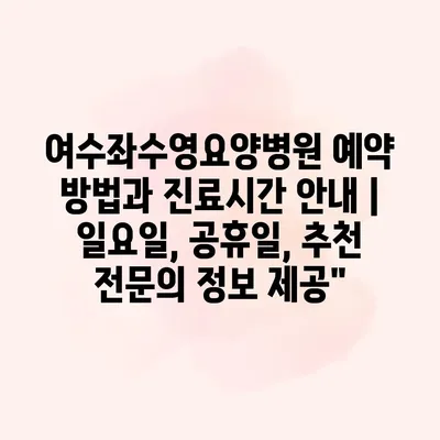 여수좌수영요양병원 예약 방법과 진료시간 공지 | 일요일, 공휴일, 추천 전연락 정보 제공 여수좌수영요양병원은 전문적인 요양 서비스를 제공하는 곳입니다. 예약 방법은 간단하며, 전화 또는 홈페이지를 통해… 더 보기 »여수좌수영요양병원 예약 방법과 진료시간 안내 | 일요일, 공휴일, 추천 전문의 정보 제공”