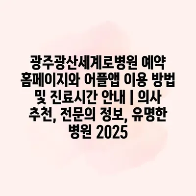 광주광산세계로병원 예약 홈페이지와 어플앱 이용 방법 및 진료시간 공지 | 의사 추천, 전연락 정보, 유명한 병원 2025에 대해 소개합니다. 먼저, 예약 홈페이지에 접속하면 간편하게 진료… 더 보기 »광주광산세계로병원 예약 홈페이지와 어플앱 이용 방법 및 진료시간 안내 | 의사 추천, 전문의 정보, 유명한 병원 2025