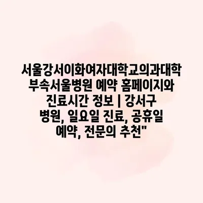 서울강서이화여자대학교의과대학부속서울병원은 강서구 지역의 대표적인 의료기관입니다. 이 병원은 다양한 전연락와 최신 시설을 갖추고 있어 환자들에게 편리하고 질 높은 서비스를 알려알려드리겠습니다. 병원 예약은 예약 홈페이지를 통해 간편하게… 더 보기 »서울강서이화여자대학교의과대학부속서울병원 예약 홈페이지와 진료시간 정보 | 강서구 병원, 일요일 진료, 공휴일 예약, 전문의 추천”