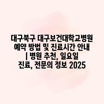 대구북구 대구보건대학교병원 예약 방법 및 진료시간 안내 | 병원 추천, 일요일 진료, 전문의 정보 2025