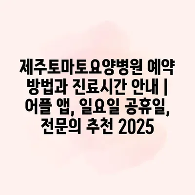 제주토마토요양병원 예약 방법과 진료시간 안내 | 어플 앱, 일요일 공휴일, 전문의 추천 2025