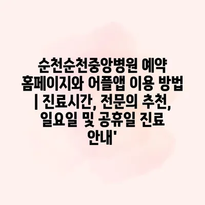 순천순천중앙병원 예약 홈페이지와 어플앱 이용 방법 | 진료시간, 전문의 추천, 일요일 및 공휴일 진료 안내’