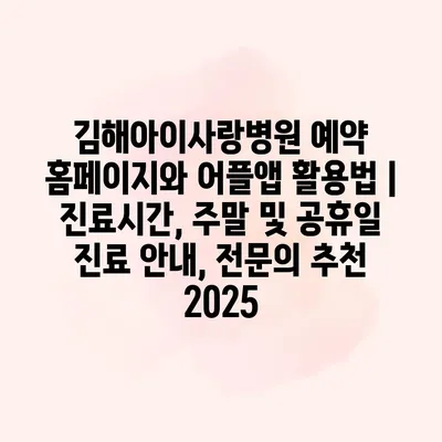 김해아이사랑병원 예약 홈페이지와 어플앱 활용법 | 진료시간, 주말 및 공휴일 진료 안내, 전문의 추천 2025