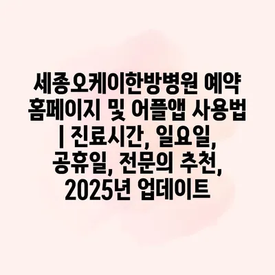 세종오케이한방병원 예약 홈페이지 및 어플앱 사용법 | 진료시간, 일요일, 공휴일, 전문의 추천, 2025년 업데이트