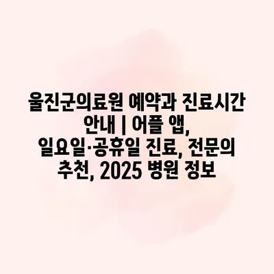 울진군의료원 예약과 진료시간 안내 | 어플 앱, 일요일·공휴일 진료, 전문의 추천, 2025 병원 정보