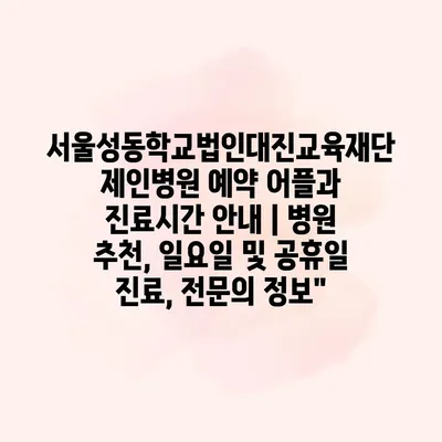 서울성동학교법인대진교육재단 제인병원 예약 어플과 진료시간 안내 | 병원 추천, 일요일 및 공휴일 진료, 전문의 정보”