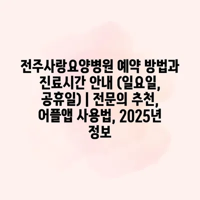 전주사랑요양병원 예약 방법과 진료시간 안내 (일요일, 공휴일) | 전문의 추천, 어플앱 사용법, 2025년 정보