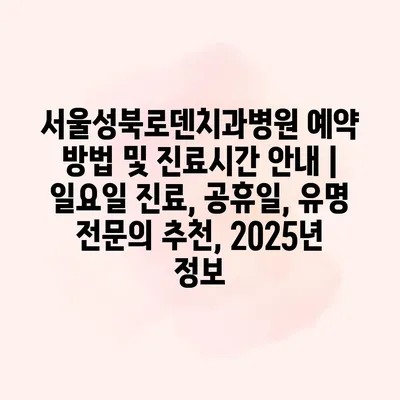 서울성북로덴치과병원 예약 방법 및 진료시간 안내 | 일요일 진료, 공휴일, 유명 전문의 추천, 2025년 정보
