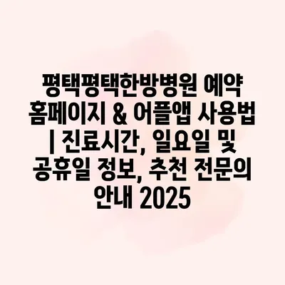 평택평택한방병원 예약 홈페이지 & 어플앱 사용법 | 진료시간, 일요일 및 공휴일 정보, 추천 전문의 안내 2025
