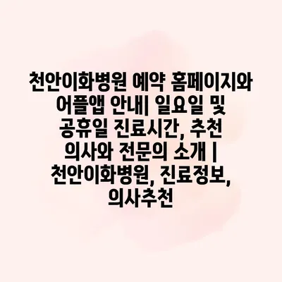천안이화병원 예약 홈페이지와 어플앱 안내| 일요일 및 공휴일 진료시간, 추천 의사와 전문의 소개 | 천안이화병원, 진료정보, 의사추천