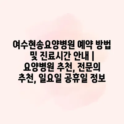 여수현송요양병원 예약 방법 및 진료시간 안내 | 요양병원 추천, 전문의 추천, 일요일 공휴일 정보